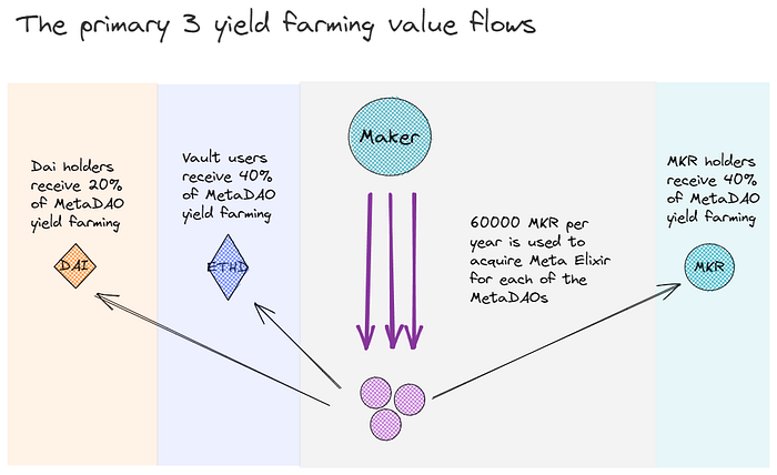 In addition to providing additional income to DAI holders, MDAO yield farming also contributes to the increase in decentralized DAI supply. 40% of MDAO yield farming is sent to the ETHD farm and distributed to ETHD vault users. At this time, the MDAO yield farming distributed to vault users is proportional to the amount of decentralized collateral assets (ETHD) that each user has deposited in the ETHD vault. As a result, users are incentivized to create more DAI by depositing more ETHD as collateral, which ultimately increases the amount of ETH assets in the DAI collateral and allows negative TR to work more smoothly.
