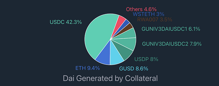 The Maker Protocol, which uses a multi-collateral system, claims to maintain its position as a decentralized stablecoin within the vault by accepting various assets such as ETH, wBTC, and USDC as collateral. However, as shown in the above graph, it can be seen that approximately 60% of the total circulated DAI is generated by stablecoins based on USD (USDC, USDP, GUSD). In the current situation where the regulation of collateralized stablecoins is continuously being discussed, if regulation becomes a reality, DAI, which relies heavily on these stablecoins as collateral, may not be free from the influence of the government. Therefore, the Endgame Plan proposes to change the DAI collateral structure in order to achieve true decentralization of DAI.