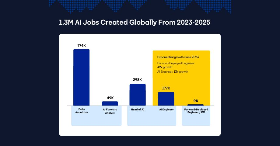 링크드인의 2026년 1월 노동시장 보고서에 따르면 2023년~2025년 사이 전 세계적으로 130만 개의 AI 관련 신규 일자리가 창출되었으며 AI 엔지니어 직무는 같은 기간 13배 늘어났다.