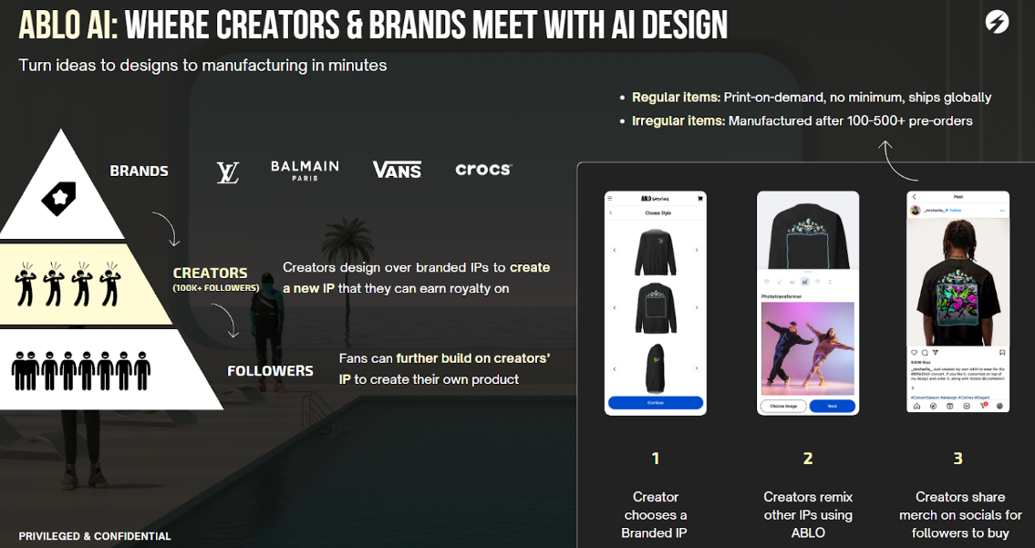 - B2B 서비스: 브랜드가 Ablo의 기술을 자사 플랫폼에 통합하여, 고객의 창의성을 활용하고 제품 라인을 확장할 수 있게 함.